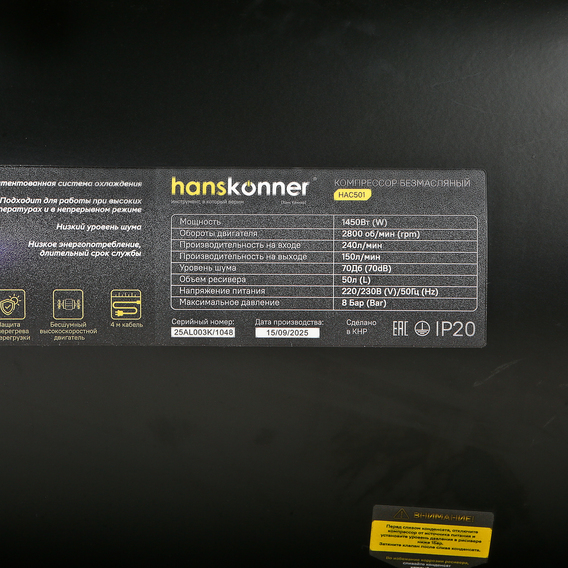 HAC501 Компрессор воздушный безмасляный Hanskonner