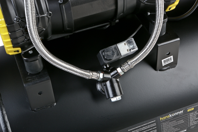 Hanskonner HAC501 - поршневой безмасляный компрессор нового поколения. Мощность данной модели составляет 1450Вт, производительность 240 л/мин, честный объем ресивера 50л., с максимальным давлением 8 бар.