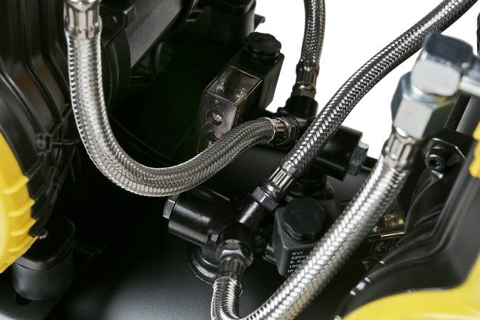 PatentedCoolingSystem- запатентованная система охлаждения увеличивает срок службы компрессора и снижает нагрев до 40% в сравнении с аналогами.Особая конструкция картера двигателя и верхнего выхода позволяют разместить вентиляторы большего диаметра, для увеличения объема захватываемого воздуха и эффективно охлаждать все элементы системы в сравнении с традиционной технологией бокового выхода охлаждающего воздуха.
