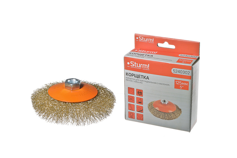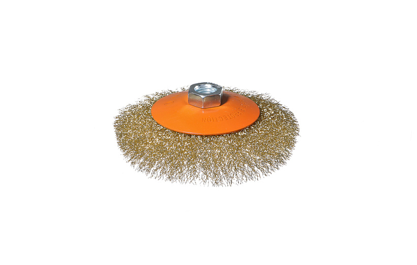 Корщетка-насадка является сменным элементом для УШМ. Применяется для зачистки от лака, краски и ржавчины различных поверхностей и изделий. Рабочая часть состоит из стальной волнистой проволоки с латунным покрытием.