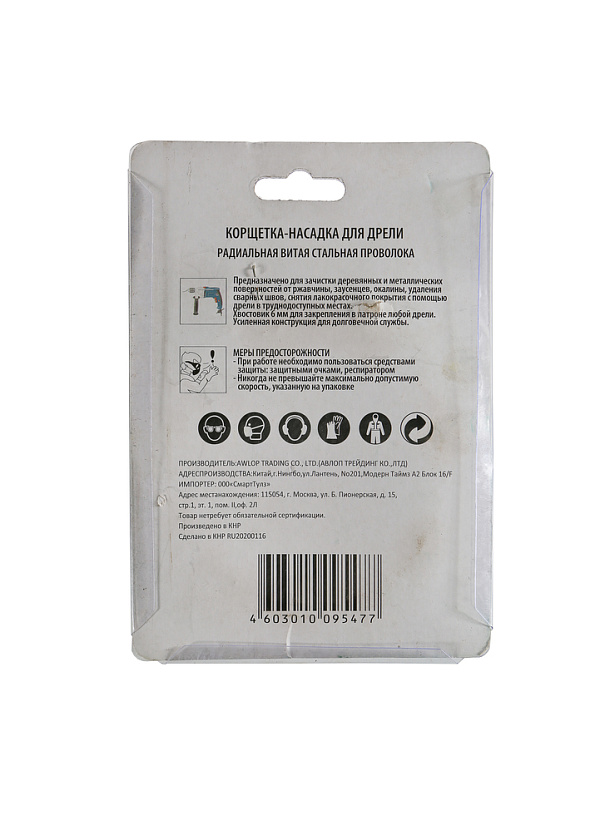 Радиальная, витая стальная проволока. диаметр 100 мм, хвостовик 6 мм. Толщина проволоки 0,6 мм обеспечивает долговечность инструмента. Для обработки ( шлифования и очистки) деервянных и металлических поверхностей в труднодоступных местах; снятия краски, ржавчины