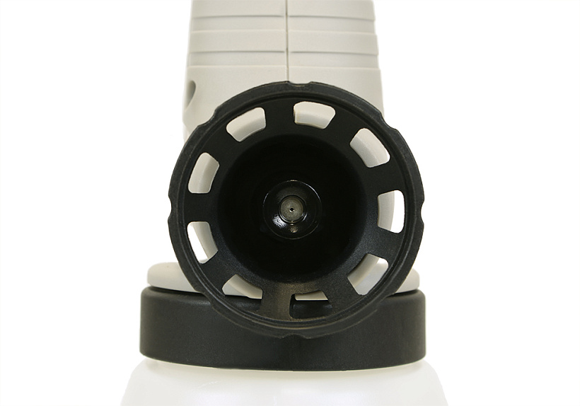 Нижнее расположение резервуара для краски и малый вес распылителя делает инструмент удобным при длительном использовании.