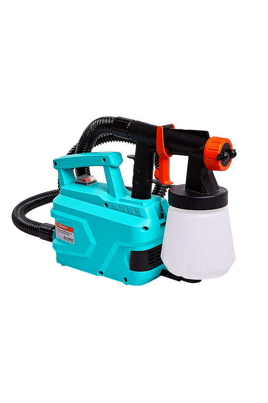 Sturm SG9660B – универсальный электрический краскораспылитель с выносной базой. Модель проста в эксплуатации и не вызовет затруднений у пользователей, не обладающих достаточными навыками работы с краскораспылителями. Главная особенность Sturm SG9660B в его компоновке: силовой блок, куда входят электромотор и нагнетающая турбина, и распылительный пистолет конструктивно разделены между собой и представляют отдельные элементы, взаимосвязь между которыми осуществляется лишь за счет двухметрового гофрированного шланга для подачи воздуха. Такая конструкция имеет существенные достоинства: лучший контроль распылительного пистолета, что способствует равномерному нанесению слоя краски на поверхность, отсутствие необходимости применения дополнительного сетевого удлинителя, за счет возможности работать на расстоянии до 4 х метров от розетки, возможность работы в условиях стесненного пространства, а также отличная приспособленность к высотным работам – в этом случае, силовой блок не сковывает движений пользователя, так как подвешивается на ремне (входит в штатную комплектацию) на плечо или за спину.
