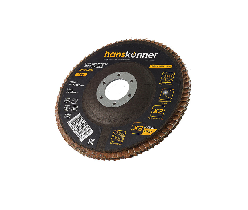 Круг зачистной лепестковый ЦИРКОНИЕВЫЙ 125х22, зерно 60, Hanskonner