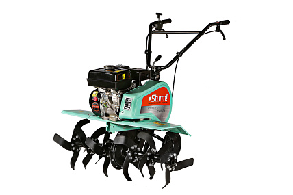 - Бензокультиватор Sturm! GK8360M — практичный агрегат, предназначенный для использования на больших садовых участках или в небольших фермерских хозяйствах, отличается возможностью уверенной работы даже в жестких условиях целины.