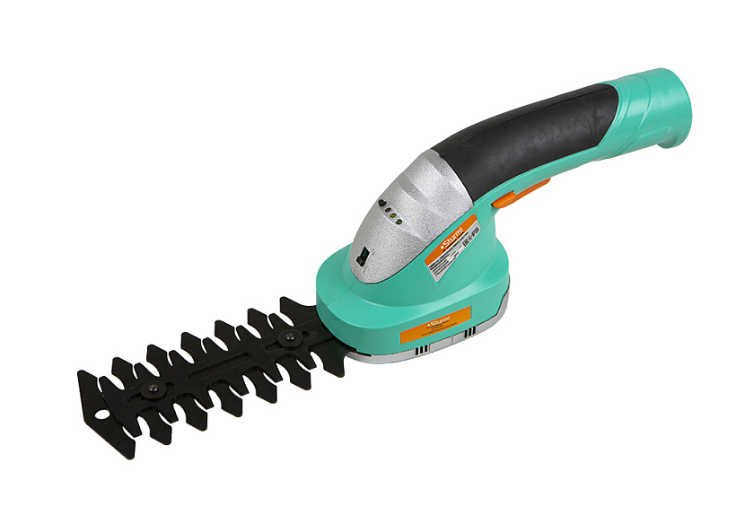 Мощный Li-ion аккумулятор напряжением 7,2 В позволяет выполнять целый спектр поставленных задач: формовка кроны, обрезка старых ветвей и стрижка.