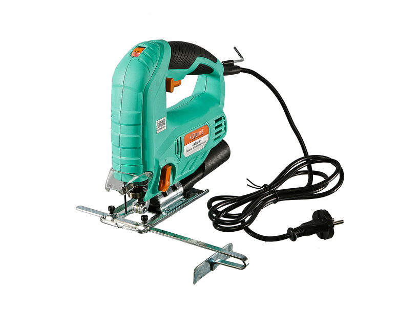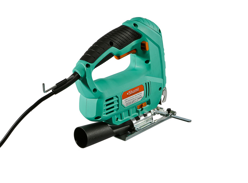 Sturm JS4061P – компактный и практичный электрический лобзик. Инструмент характеризуется небольшими массово-габаритными показателями и выверенной эргономикой – надежен в хвате и отлично контролируется даже одной рукой. Модель оснащена 800 Вт электромотором и мощной механической частью, благодаря чему демонстрирует достаточно высокие показатели по максимальной глубине пропила: до 100 мм в древесине и до 10 мм в металле. Наиболее точно настроить инструмент применимо к конкретному материалу позволяет электронная регулировка количества ходов штока (800 ¬– 3000 ход / мин), а также функция маятникового хода с четырьмя режимами – с помощью специального переключателя пользователь выбирает оптимальный режим работы с упором на максимальную производительность, либо максимальное качество реза с наименьшим количеством сколов. Для удобства пользователя на инструменте установлен механизм безыинструментальной замены полотна, за счет чего смена оснастки производится максимально быстро и просто, без необходимости применения специального ключа. Дополнительный комфорт при работе обеспечивают фиксация пусковой клавиши, прозрачный защитный щиток, а также возможность принудительного выдува опилок с рабочей зоны для лучшего обзора линии реза. При необходимости, возможно подключение к инструменту строительного пылесоса.