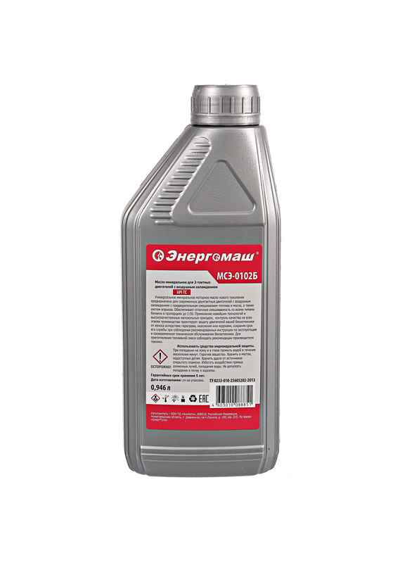 ЭНЕРГОМАШ МСЭ-0102Б – всесезонное минеральное моторное масло нового поколения. Предназначено для двухтактных бензиновых двигателей воздушного охлаждения (с предварительным смешиванием топлива и масла) различных видов садовой техники: бензопил, мотокос, воздуходувок, газонокосилок, мотокультиваторов, мотоопрыскивателей и т д. Гарантирует надежную и долговечную работу двигателя и минимизирует необходимость частого технического обслуживания и ремонта. Предотвращает преждевременный износ и перегрев цилиндропоршневой группы, снижает образование нагара и отложений, закоксовывание поршневых колец, калильное зажигание, способствует уменьшению дымности и имеет низкую зольность. Благодаря наличию специального пакета присадок минеральное масло СОЮЗ МС2-0102Б обеспечивает облегченный запуск двигателя даже в условиях низких температур. Поставляется в пластиковых канистрах объемом 0.946 л.