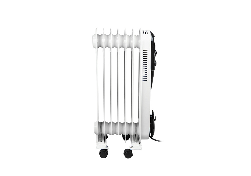 СОЮЗ МРС-1507 — современный и эргономичный масляный радиатор на семь секций — предназначен для обогрева небольших помещений площадью до 15 м2. Благодаря нагревательному элементу мощностью 1,5 кВт обогреватель быстро набирает рабочую температуру, а большое количество секций, позволяют эффективно и равномерно распределять тепло. Модель имеет простое и интуитивно понятное управление с помощью механических регуляторов, расположенных на передней панели. С помощью одного регулятора пользователь выбирает оптимальный режим нагрева из трех возможных: эконом/умеренный/максимальный. Назначение второго регулятора — управление настройкой термостата, задача которого — автоматическое поддержание постоянной температуры в помещении. Для визуального контроля включенного устройства предусмотрен отдельный индикатор питания, также размещенный на панели управления. Устройство оснащено термозащитой и датчиком опрокидывания, что предотвращает риск возникновения пожароопасных ситуаций. За счет компактных габаритных размеров масляный радиатор СОЮЗ МРС-1507 не доставит неудобств при хранении, а небольшая масса прибора и наличие транспортировочных колес на установочных ножках сделают его перемещение с места на место простым и удобным.