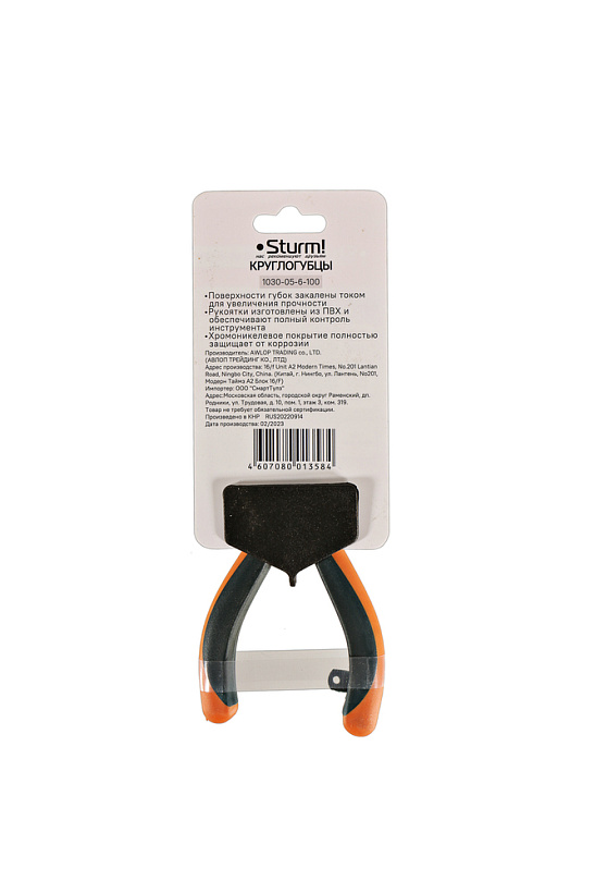 Круглогубцы, 100мм, TPR рукоятки, никелированные, Sturm!