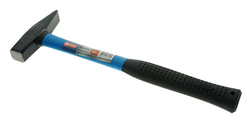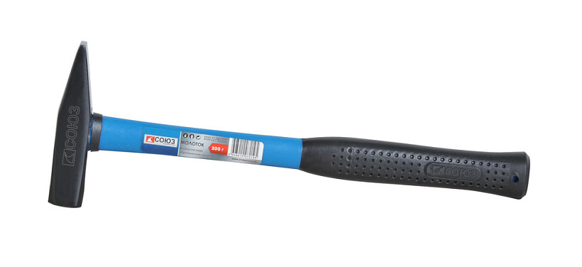 Слесарный молоток СОЮЗ 200 гр. c защитой от раскола имеет эргономичную фиберглассовую полностью обрезиненную рукоятку, которая амортизирует удар и создает удобный захват.