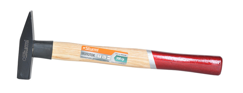 Молоток слесарный кованый боек, 300 г, деревянная рукоятка Sturm!