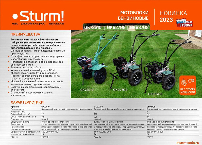 Мотоблок бензиновый Sturm! GK72S10.