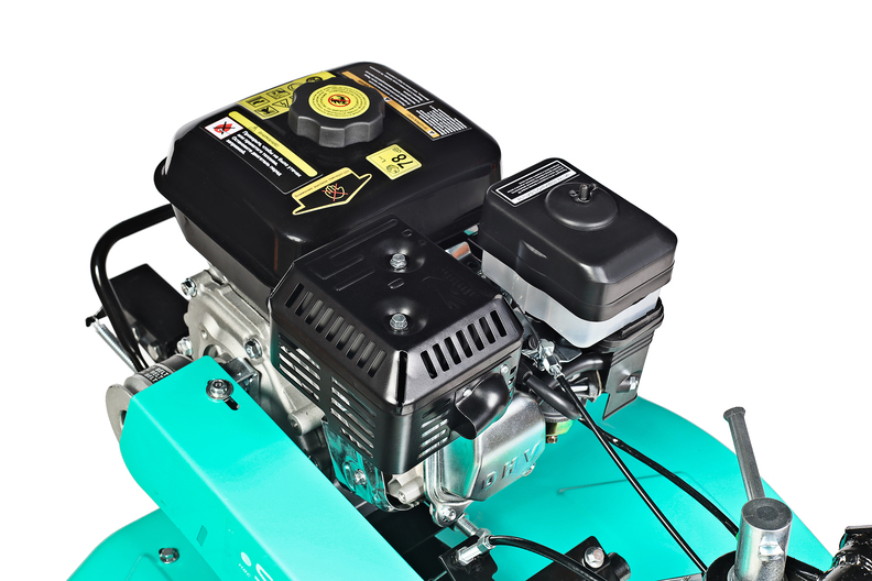Данная модель снабжена четырехтактным одноцилиндровым бензиновым мотором с воздушным охлаждением. мощностью 7 л.с. Рабочий объем двигателя 212 см3. Топливный бак рассчитан на 3,6 литра бензина. Запуск производится от ручного стартера.