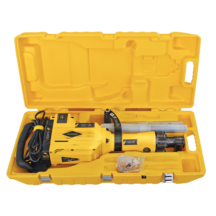 Hanskonner HRH2048VC – мощный и производительный отбойный молоток с типом патрона HEX. Предназначен для разрушения конструкций из бетона, железобетона, кирпича и камня, долбления асфальтовых, бетонных и плиточных покрытий. Инструмент обладает отличной развесовкой, за счет чего достигается его уверенный контроль, а также тщательно проработанной эргономикой. Регулируемая на 360° дополнительная D-образная рукоять обеспечивает надежный хват в любом положении отбойного молотка, а наличие антивибрационной задней рукояти способствует снижению нагрузки на оператора при работе. Модель оснащена 2100 Вт электродвигателем и мощным ударным механизмом, развивающим энергию удара в 50 Дж – это позволяет быстро и эффективно справляться с задачами по демонтажу различной сложности. Высокий ресурс инструмента при работе в особо тяжелых условиях гарантируют бронированный арамидной нитью электродвигатель ArmorProtect и закаленные шестерни редуктора. Для простоты обслуживания модель имеет функцию быстрого доступа к щеткам, способствующую их замене без разбора элементов корпуса. Длинный пятиметровый сетевой кабель 5VelcroRubber дает возможность расширить рабочую зону до 78 м2 без необходимости применения дополнительного удлинителя. Наличие специального фиксатора-липучки позволяет быстро и просто фиксировать кабель в транспортном положении. Удобство хранения и перемещения отбойного молотка с места на место обеспечивает штатный металлический кейс-тележка.