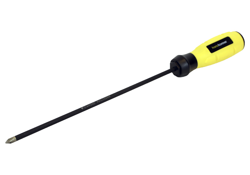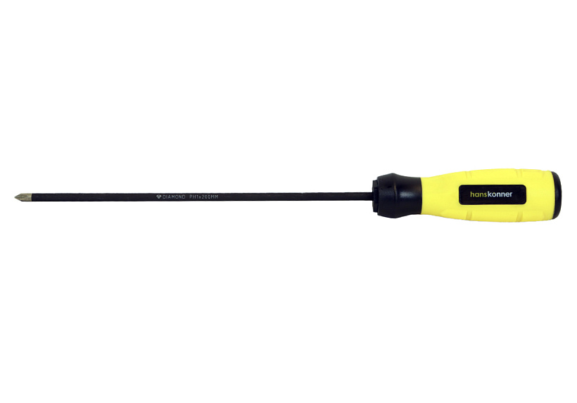 Отвертки имеют эргономичную двухкомпонентную рукоятку с рифлениями, исключающими проскальзывание, мягкая поверхность рукоятки делает работу комфортной. Рабочая часть выполнена из стали марки S2, наконечником с алмазным покрытием,что определяет ее прочность и износостойкость. Жало отвертки намагничено для удержания метизов при работе.