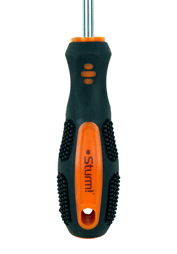 Отвертки имеют эргономичную двухкомпонентную рукоятку с рифлениями, исключающими проскальзывание, мягкая поверхность рукоятки делает работу комфортной. Рабочая часть выполнена из качественной инструментальной стали, что определяет ее прочность и износостойкость. Жало отвертки намагничено для удержания метизов при работе.