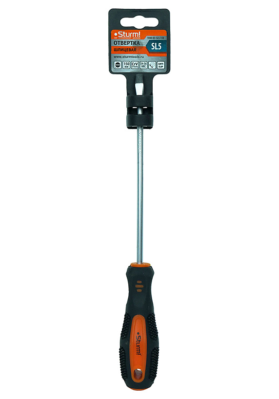 Отвертка плоский шлиц SL5х150мм, CrV, магнитный наконечник Sturm!