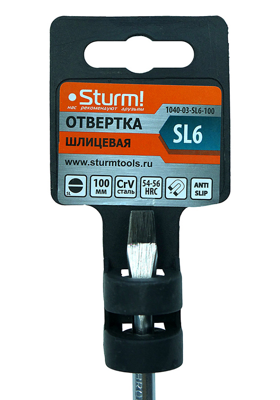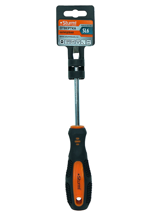 Отвертка плоский шлиц SL6х100мм, CrV, магнитный наконечник Sturm!