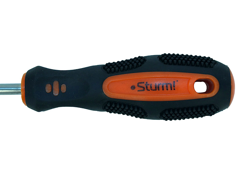 Рабочая часть отвертки выполнена из высоколегированной хромованадиевой инструментальной стали и имеет высокую твердость и прочность, что определяет длительный срок службы инструмента.