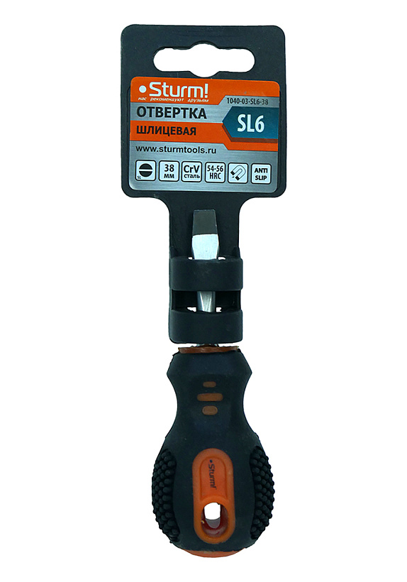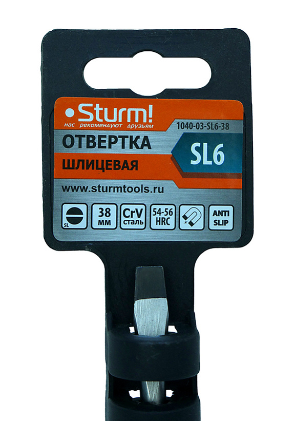Отвертка плоский шлиц SL6х38мм, CrV, магнитный наконечник Sturm!