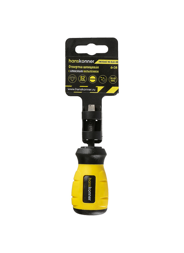 Отвертка шлицевая, SL 6x38, алмазный наконечник, S2, Hanskonner