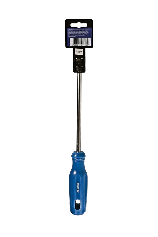 Эргономичная рукоятка из ПВХ с удобным отверстием для подвеса. Рабочая часть отвертки выполнена из высоколегированной хромованадиевой инструментальной стали и имеет высокую твердость и прочность, что определяет длительный срок службы инструмента.Возможно, вас заинтересует