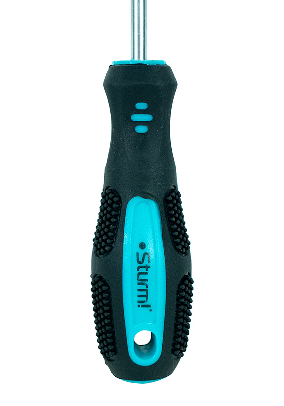 Отвертки имеют эргономичную двухкомпонентную рукоятку с рифлениями, исключающими проскальзывание, мягкая поверхность рукоятки делает работу комфортной. Рабочая часть выполнена из качественной инструментальной стали, что определяет ее прочность и износостойкость. Жало отвертки намагничено для удержания метизов при работе.