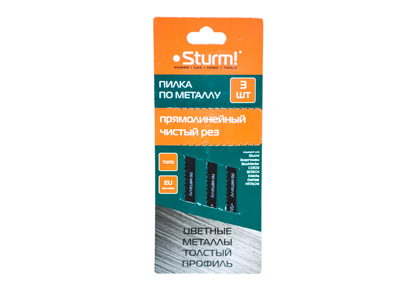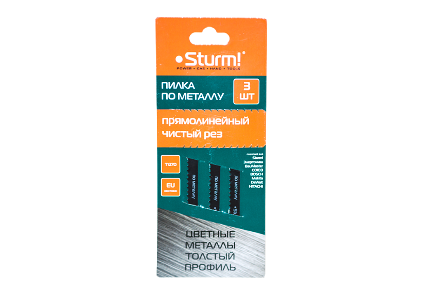3. Полотна "STURM!" имеют европейский (EU) хвостовик, что позволяет их использовать для электролобзиков торговых марок STURM!, Энергомаш, Союз, Baumaster, AEG, Bosch, Hitachi, Makita, Metabo.