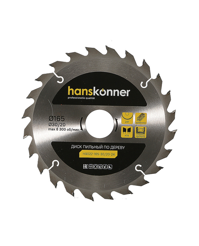 Пильный диск по дереву 165x30/20мм, 24 зубьев, Hanskonner