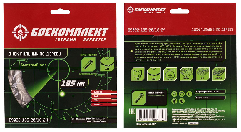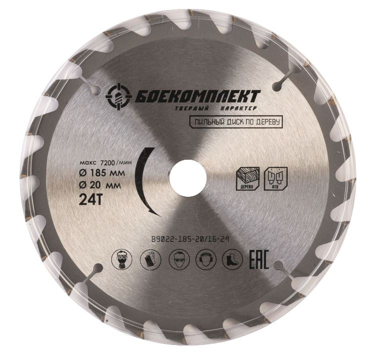 Пильный диск по дереву 185x20/16мм, 24 зубьев, БОЕКОМПЛЕКТ