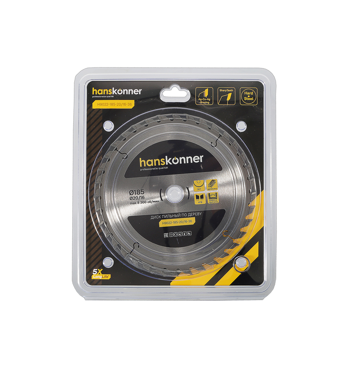 Пильный диск по дереву 185x20/16мм, 36 зубьев, Hanskonner