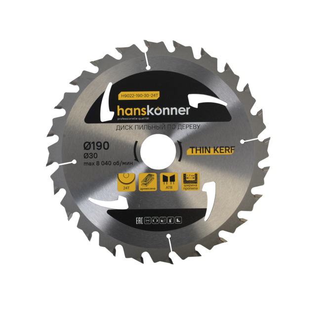 Пильный диск по дереву 190x30мм, 24 зубьев, Hanskonner