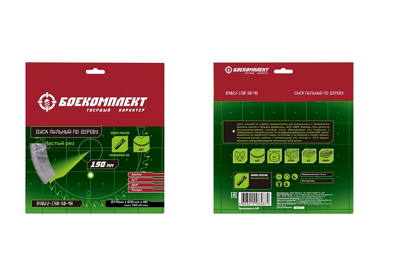 Пильный диск по дереву 190x30мм, 48 зубьев, БОЕКОМПЛЕКТ