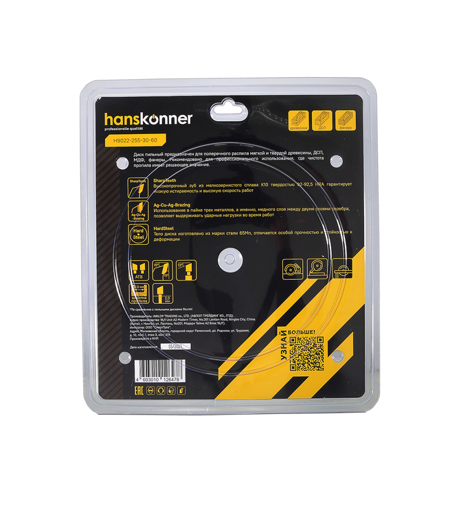 Пильный диск по дереву 255x30 мм, 60 зубьев, Hanskonner