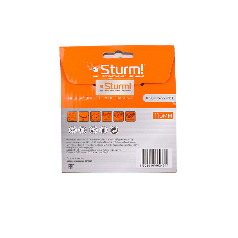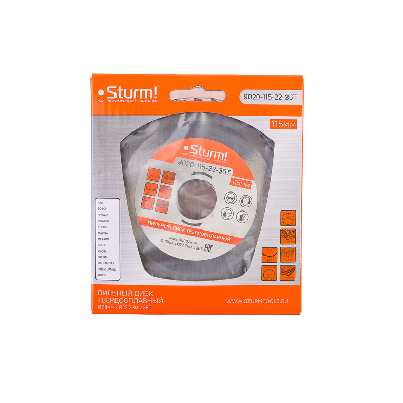 Пильный диск, размер 115x22x36 зубьев, твердосплавные напайки Sturm!