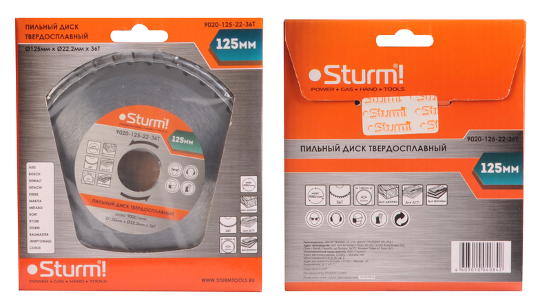 Пильный диск, размер 125x22x36 зубьев, твердосплавные напайки Sturm!