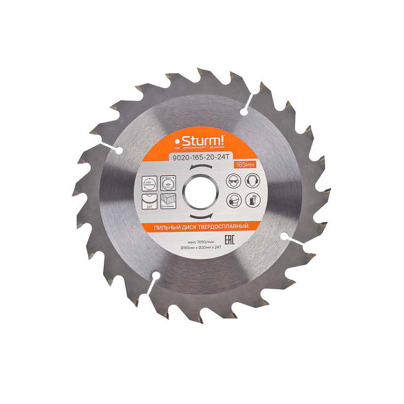Пильный диск, размер 165x20/16x24 зуба, твердосплавные напайки Sturm!