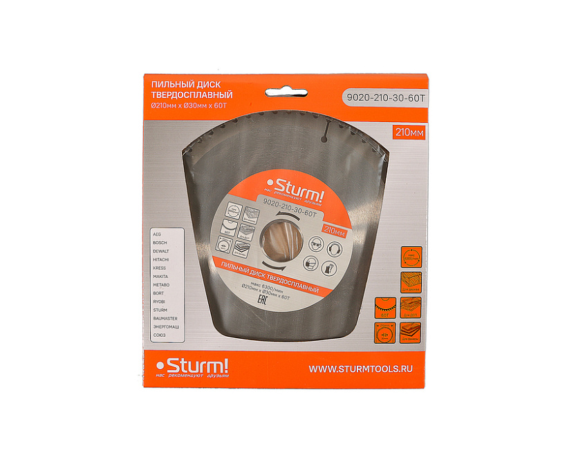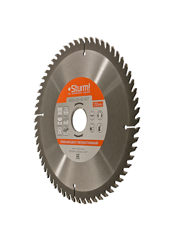 Пильный диск, размер 210x30x60 зубьев, твердосплавные напайки Sturm!