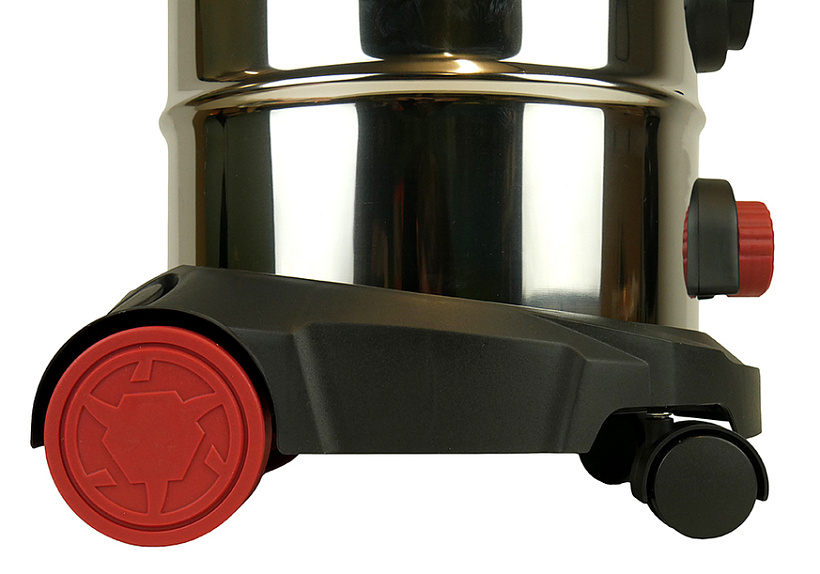 Эргономичный корпус, выполненный с применением нержавеющей стали, стойкой к ударам и агрессивным средам, оснащен дополнительными колесиками для обеспечения наилучшего комфорта при работе с инструментом. Все принадлежности для уборки имеют легкий доступ в удобных местах хранения, а для кабеля и шланга предусмотрено транспортное положение с намоткой вокруг аппарата. Не спутывающийся прочный кабель обеспечивает надежное питание в любых условиях.