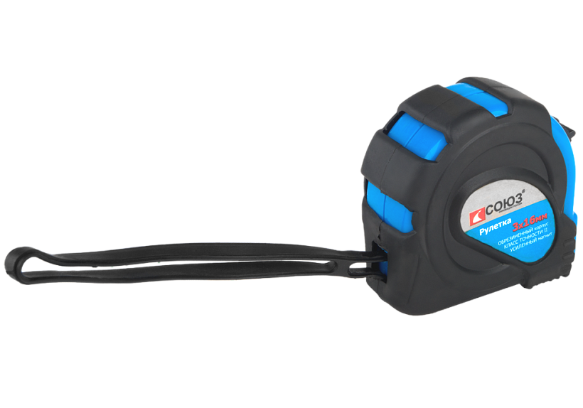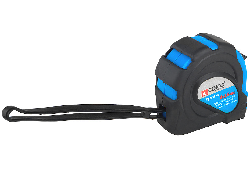 Рулетка 3x16мм, обрезиненная, магнит на зацепе, СОЮЗ