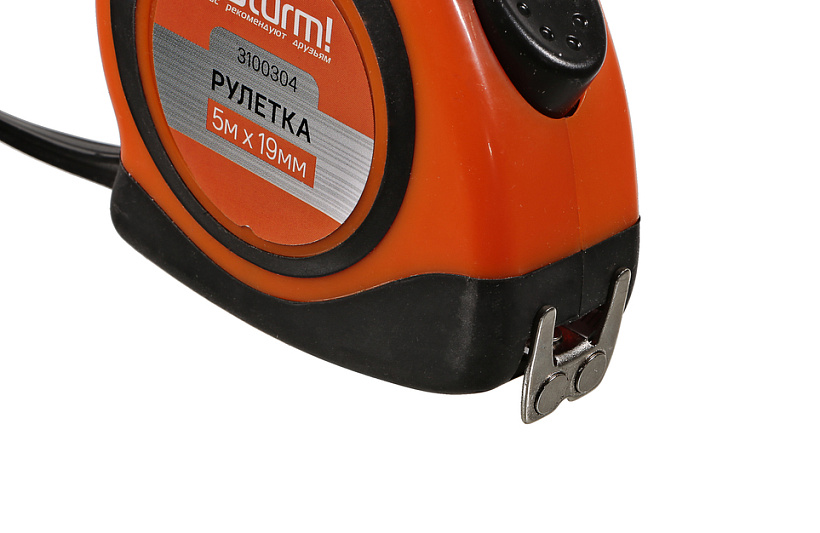 Рулетка 5x19мм, автостоп, двухсторонняя шкала, магнит на зацепе, Sturm!