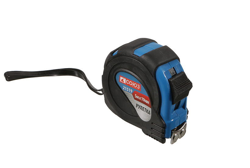 Рулетка 5x19мм, обрезиненная, магнит на зацепе, СОЮЗ