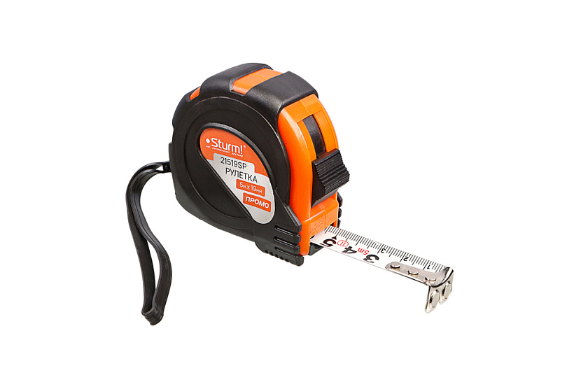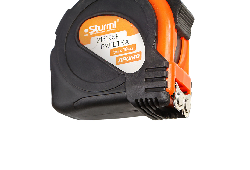 Рулетка 5x19мм, обрезиненная, магнит на зацепе, Sturm!