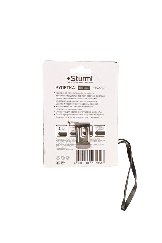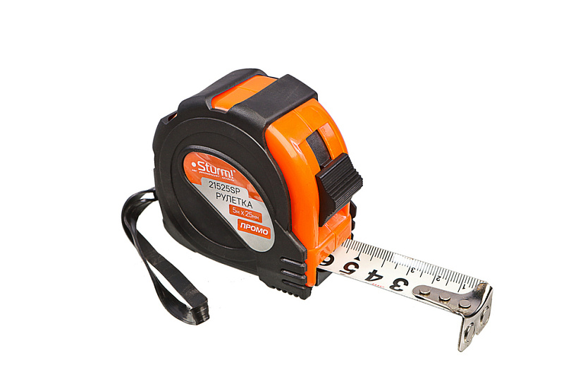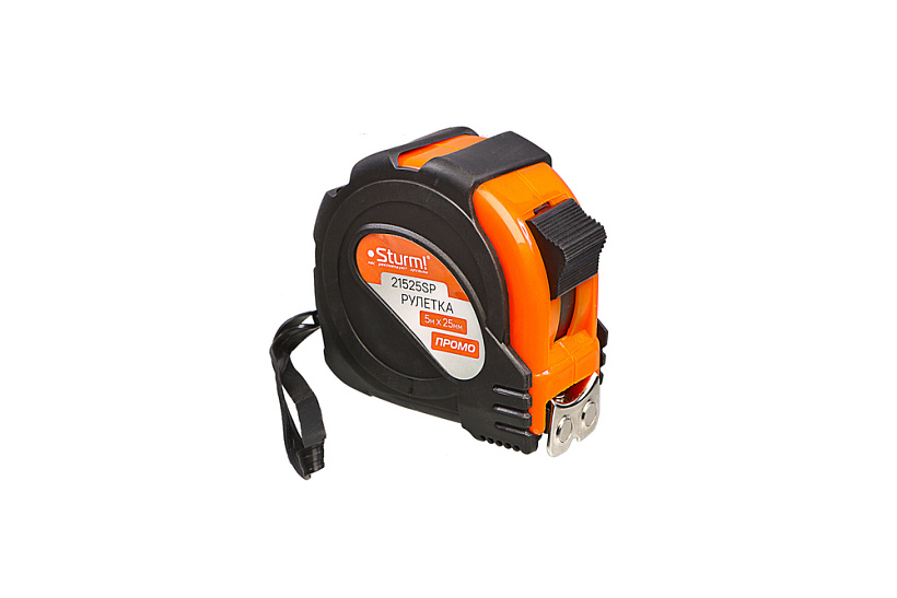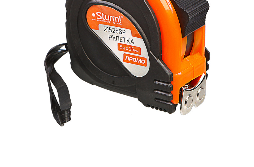 Рулетка 5x25мм, обрезиненная, магнит на зацепе, Sturm!