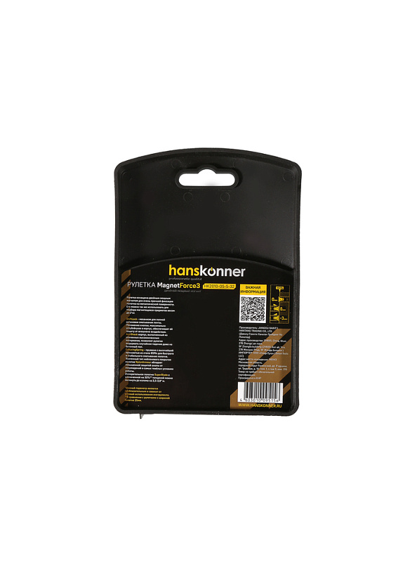Рулетка Hanskonner HK2010-05-5-32. Рулетка MagnetForce3 5х32 оснащена двойным мощным магнитом для очень прочной фиксации полотна на металлической поверхности. Его можно также использовать для подбора магнитящихся предметов весом до 2кг.