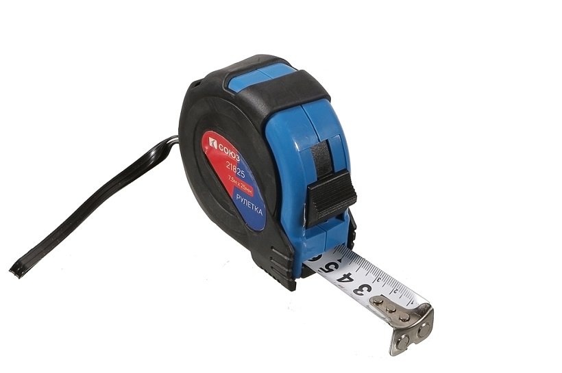 Рулетка 7,5х25мм, обрезиненная, магнит на зацепе, СОЮЗ