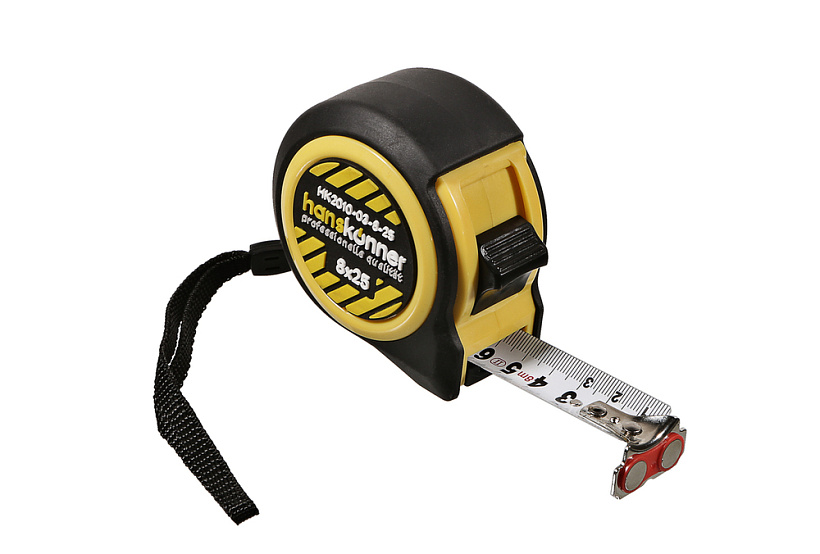 Рулетка 8x25мм, 2 стопа, компактный корпус, мощный магнит, Hanskonner