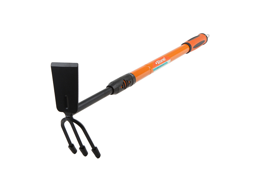 Культиватор/мотыга Sturm! 3010-10-TH.Телескопическая ручка: 65 см-98 см; рукоять изготовлена из термопластичной резины; рабочая часть мотыги/грабель изготовлена из легированной инструментальной стали. Кольцо для удобного хранения инструмента.