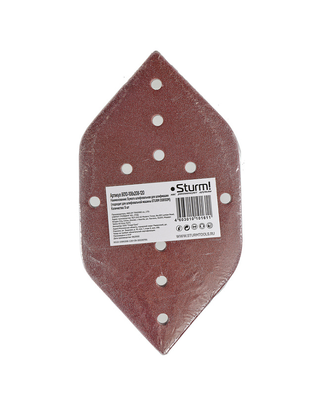 Шлифбумага, ромб, 108х208мм, Р120, 5 шт, Sturm!